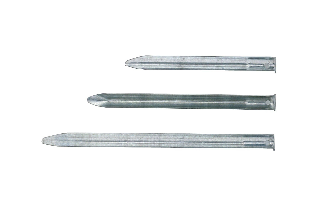 Gemaakt van verzinkt staal. Standaard haring uit plaatstaal met een scherpe punt.