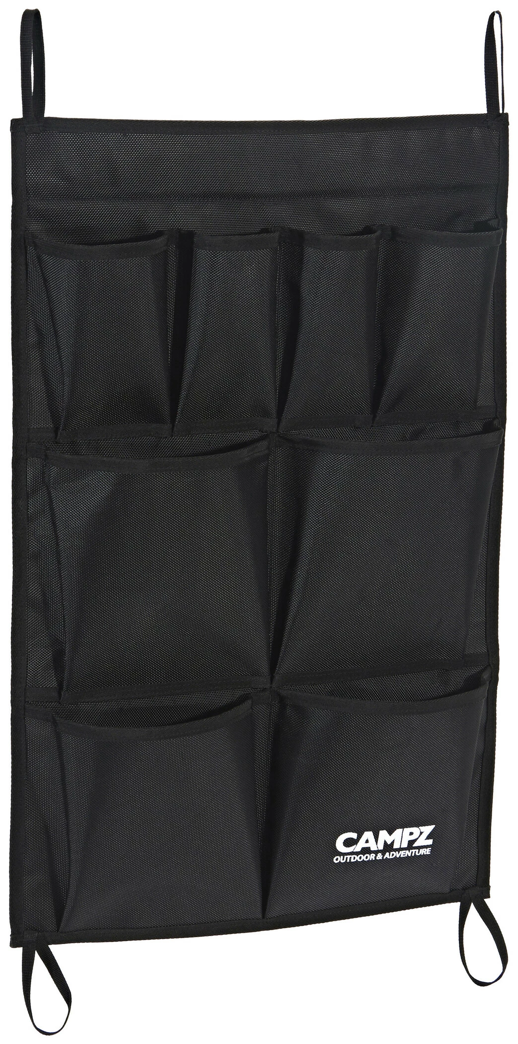 Deze tent organizer van CAMPZ biedt benodigde extra ruimte in je tent en is dankzij de vier ophanglussen universeel inzetbaar. De 4 grote en 4 kleine vakken zijn perfect voor het opbergen van bijvoorbeeld je zonnebril, boeken en vele accessoires.