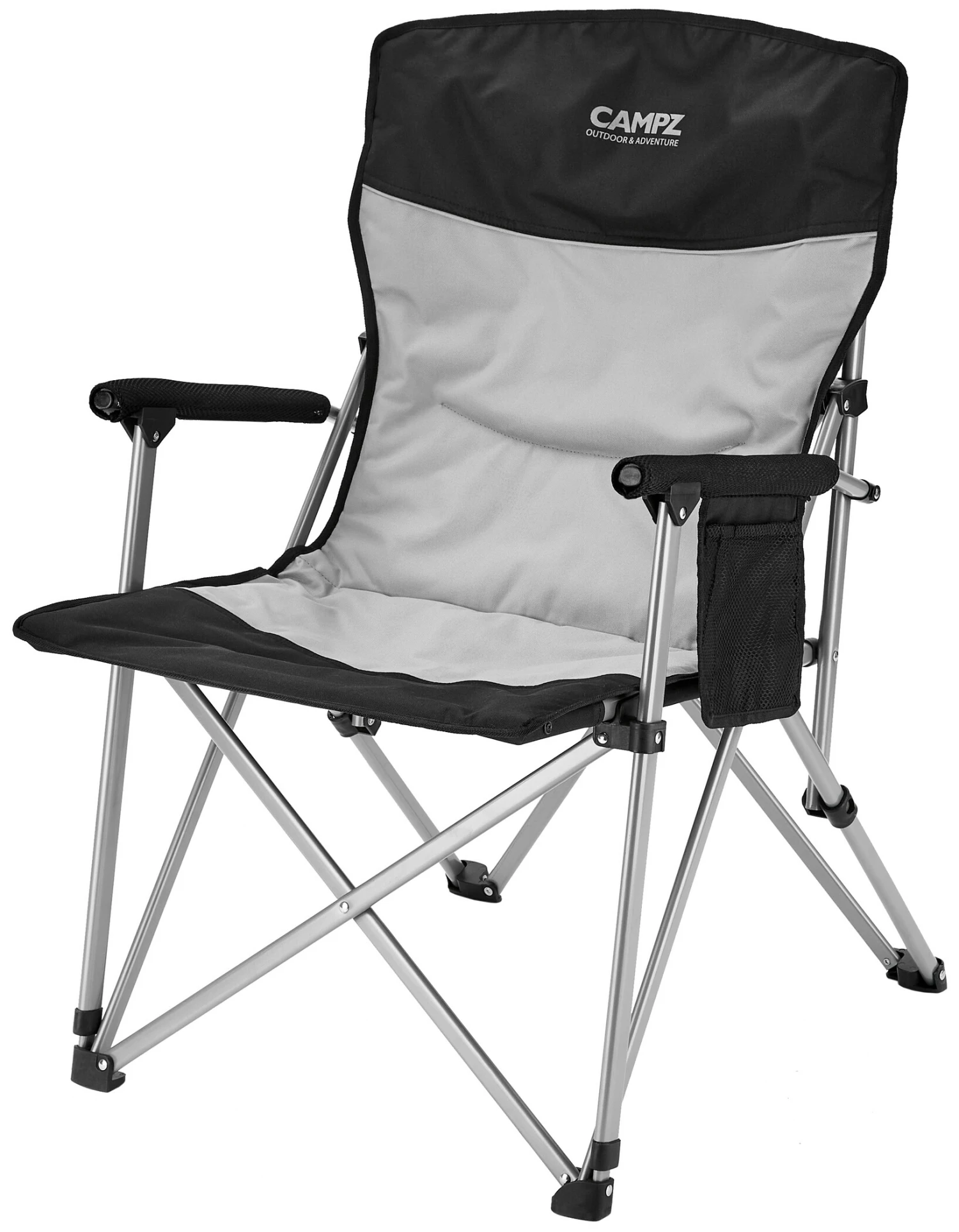 Vouwstoel met hoes van slijtvast polyester en frame van stalen buizen.