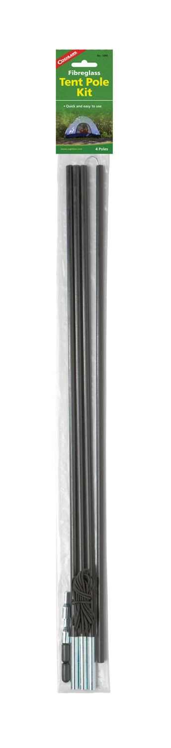 Set voor de reparatie van glasvezelstaven. Met vier segmenten (waarvan drie met connectoren), twee vinyl kappen, een insteekdraad (73 cm) en 25 cm rubbertouw.