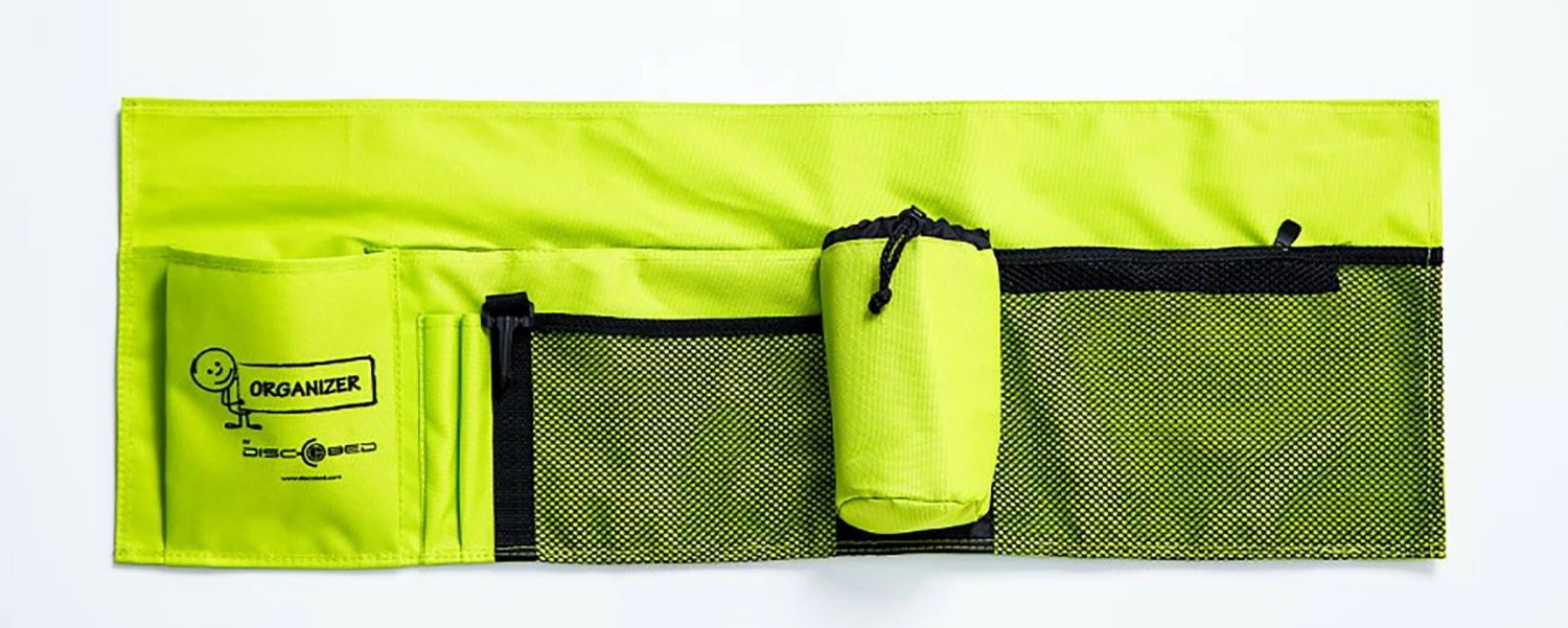 Hoe maak je van een kampeertocht met kinderen een onvergetelijke ervaring? Zorg ervoor dat je de favoriete dingen van je kinderen niet vergeet. Daarom heeft Disc-O-Bed een plaats uitgevonden waar je al je persoonlijke bezittingen kan opbergen. Het zijvak heeft verschillende open zakken en zakken met ritssluiting die genoeg ruimte bieden voor boeken of speelgoed, een waterfles, zaklamp en meer. Er is zelfs genoeg ruimte voor een hengel.
