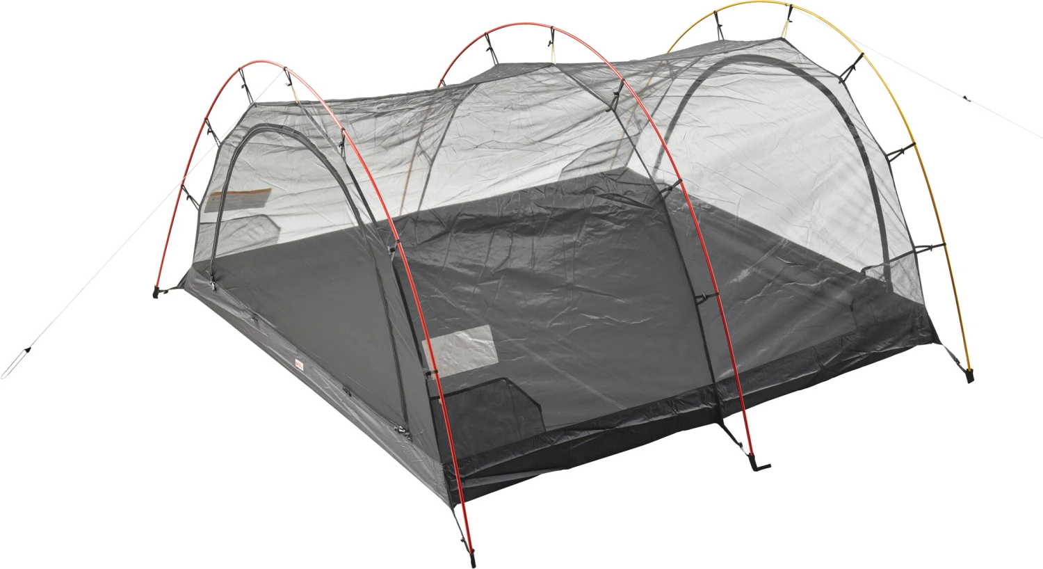 Binnentent van gaasweefsel voor een uitstekende ventilatie bij het kamperen in warme/tropische omstandigheden. Perfect om te genieten van de koele avondlucht en tegelijkertijd beschermd te zijn tegen ongewenste insecten – het extra fijne gaasweefsel houdt zelfs de kleinste insecten op afstand. Kan ook gebruikt worden in combinatie met de Abisko Endurance 4 en de Keb Endurance 4 bij het kamperen in een warm, vochtig klimaat. Het kan ook alleen worden gebruikt voor warme en droge omstandigheden. In geval van mogelijke regen kan het ook ideaal gecombineerd worden met een dekzeil. Tentvloer van 70D PU-gecoat polyamide beschermt tegen vochtige oppervlakken. Kan worden opgezet met de Inner Tent Pitch Kits voor 2-4 personen apart of in combinatie met een Tarp. De tentstokken van de Abisko Endurance 4 en Keb Endurance 4 passen ook in de Mesh Inner Tent. Als u echter alleen de Mesh Binnentent heeft, heeft u ook de Abisko Endurance 4 Pole Kit (Art. 55012) of de Keb Endurance 4 Pole Kit (Art. 55023) nodig om de binnentent apart op te zetten.