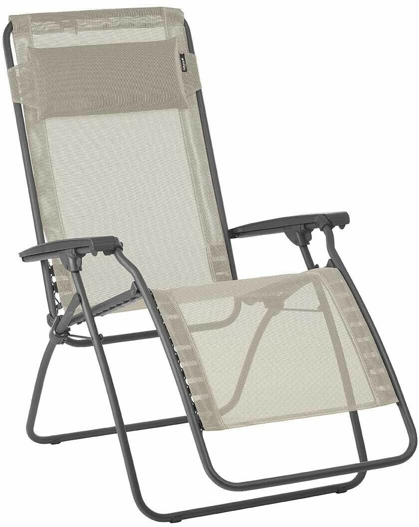 The Lafuma RSXA Clip XL recliner has a frame made of painted 20 mm Ø steel tubing. The position of the armrests can be infinitely adjusted, the position is fixed by a parking brake. The cover is removable, the suspension and fastening of the cover is done by the patented clip system. The chair also has an ergonomic, adjustable and removable headrest cushion, a footrest protector and a floor protector.