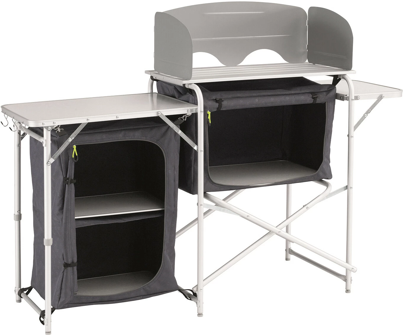 - Oprolbaar aluminium tafelblad met verwijderbaar windscherm voor veilig koken