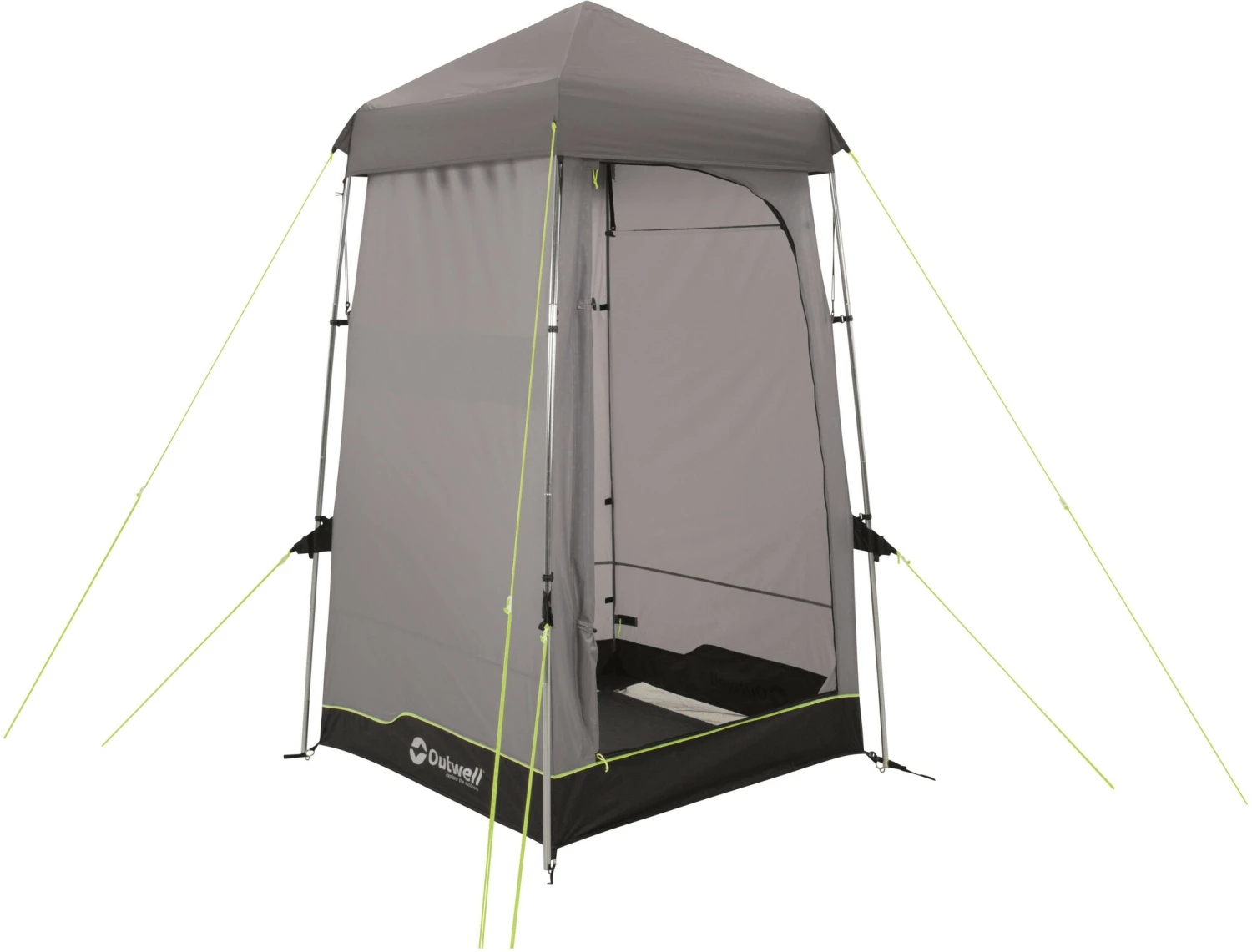Maakt opzetten gemakkelijker. Deze tent met één toilet biedt de mogelijkheid om discreet een chemisch toilet te plaatsen, met ruimte om te douchen met een optionele Outwell-douchezak die in het hangvak aan het plafond hangt – een vinyl dakraam vangt de zonnestralen op om het water te verwarmen. Andere kenmerken zijn beschermde ventilatiepanelen, handdoekenrek, vakken en grondzeil met afvoergaas.
