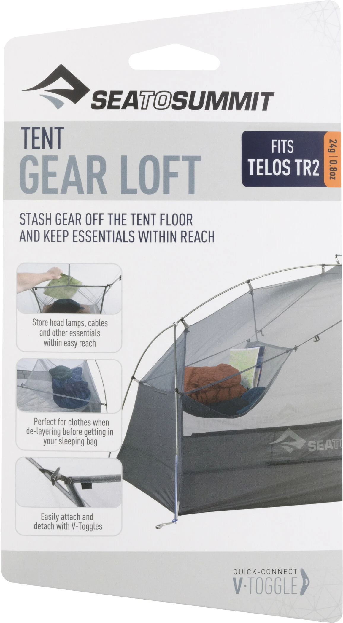 Houd kleding, hoofdlampen en andere benodigdheden binnen handbereik met het ultralichte Telos TR2 Gear Loft gaas – past op Telos TR2 Ultralight Backpacking Tent en Telos TR2 Plus Ultralight Backpacking Tent modellen. Het bagagenet is gemakkelijk te bevestigen en te verwijderen met V-snaren en gebruikt de dode ruimte voor extra opslag op afstand van de tentvloer.