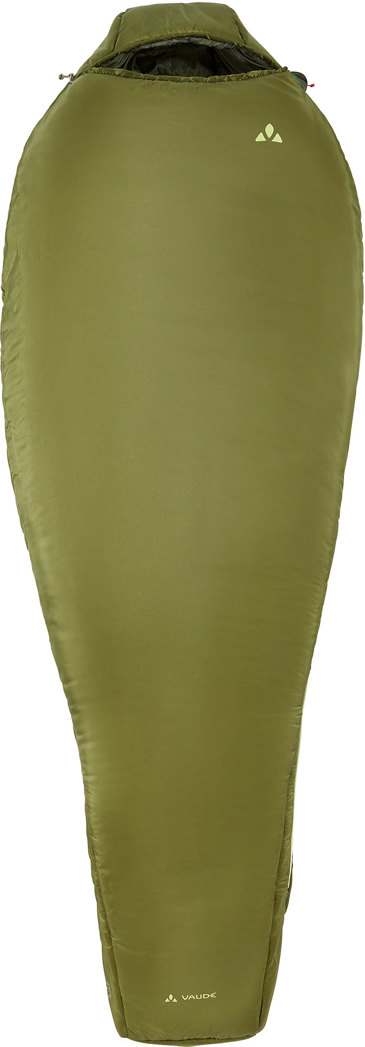 Zeer warme, innovatieve mummieslaapzak met kunstvezelvulling voor alpine wandelen, bergbeklimmers en trekkers, die van voorjaar tot in de herfst onderweg zijn. Deze doordachte slaapzak met warmtekraag heeft geen doorgestikte naden – zo blijft het vulmateriaal overal luchtig en ontstaan er geen koudebruggen; de lichaamswarmte blijft homogeen in de slaapzak verdeeld en de ontbrekende naden voorkomen ook het binnendringen van vocht en dauw. Het bluesign gecertificeerde materiaal wordt voor 100 % van gerecycled polyester gemaakt en is ook voor de gevoelige huid geschikt. Voor gemakkelijk gebruik is de capuchon van de Selun van verschillende koorden voorzien – zo kan gedurende de nacht de capuchon snel en gemakkelijk aan de respectievelijke slaaphouding worden aangepast. De nieuwe “Easy-Exit-ritssluiting” kan bliksemsnel met beide handen omhooggetrokken worden en maakt snel openen van de slaapzak mogelijk. Dat is vooral handig als je binnen enkele seconden uit de slaapzak wil of moet. Een ander veiligheidsaspect is het documentenvak in het voeteneind van de slaapzak – het houdt waardevolle spullen zoals mobiele telefoons, paspoorten en tickets veilig tegen diefstal en toch snel toegankelijk zonder te storen tijdens het slapen. De warme Primaloft wattering van gerecycled polyester is onderhoudsvriendelijk en sneldrogend, hij isoleert bovendien ook in vochtige toestand. Dankzij de lichte materialen weegt de slaapzak niet veel en kan klein gecomprimeerd worden. Het VAUDE Green Shape-label staat voor een milieuvriendelijk, functioneel product van duurzame materialen.